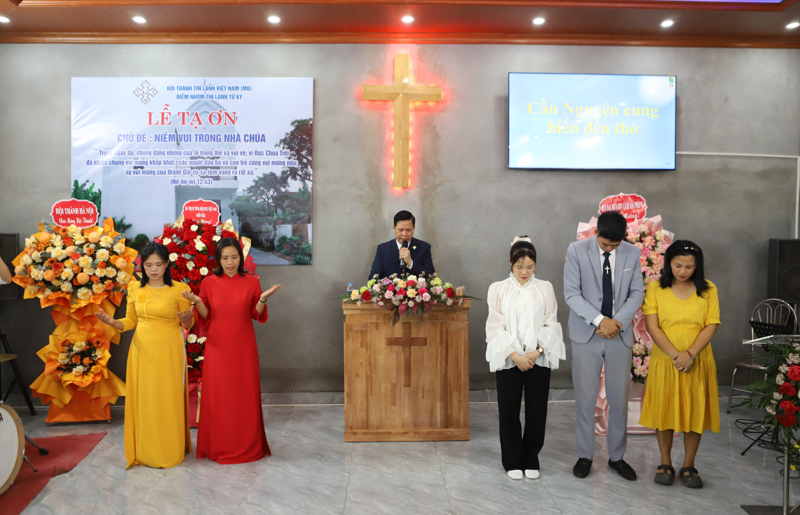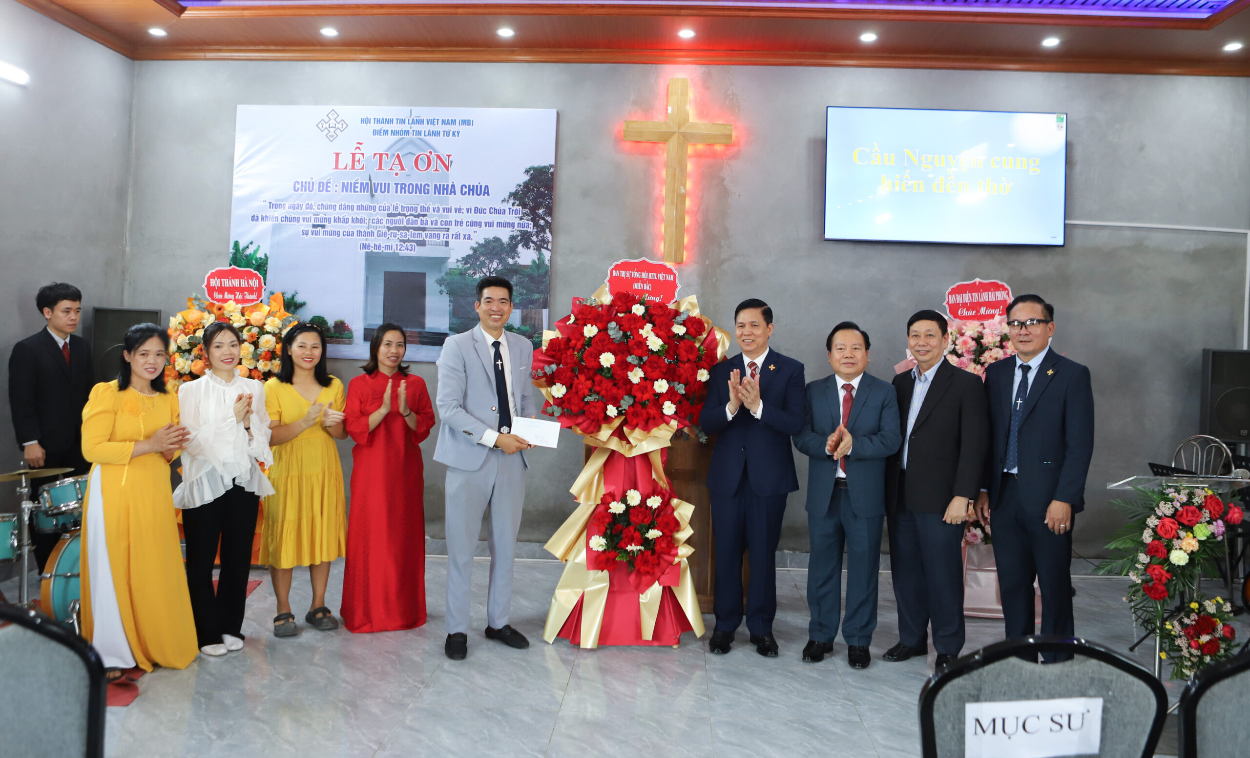 Sáng ngày 10/04/2026, Hội Thánh Tin Lành Tứ Kỳ long trọng tổ chức Lễ Cảm Tạ, dâng lời tạ ơn Đức Chúa Trời sau gần một năm xây dựng nhà Chúa. Đây là dịp đặc biệt để toàn Hội Thánh bày tỏ lòng biết ơn về sự thành tín, yêu thương và tiếp trợ của Chúa trong suốt chặng đường hình thành, phát triển và xây dựng nơi nhóm thờ phượng. Tham dự chương trình có đại diện Ban Trị sự Tổng Hội, Mục sư Hội trưởng Bùi Văn Sản, Mục sư Phó Hội trưởng I Nguyễn Hữu Mạc, quý Mục sư các Hội Thánh khu vực Hải Phòng, Ban Hiệp Nguyện Miền Duyên Hải Mở Rộng, các Hội Thánh gần xa và đại diện chính quyền địa phương đến chung vui với Hội Thánh.