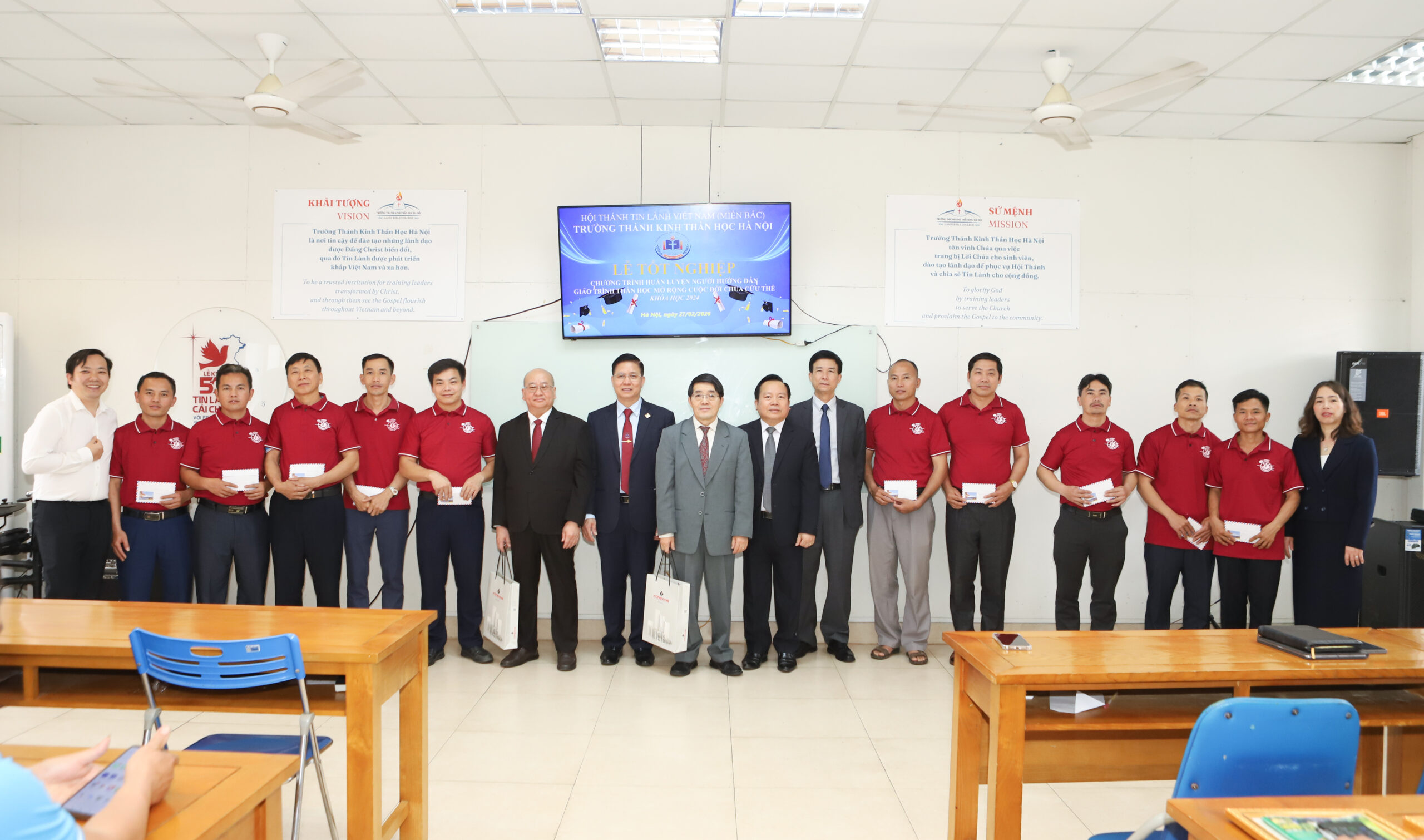 Tham dự buổi lễ có: Mục sư Bùi Văn Sản – Hội trưởng Hội Thánh Tin Lành Việt Nam (Miền Bắc); Mục sư Nguyễn Hữu Mạc – Phó Hội trưởng I, Hiệu trưởng Trường Thánh Kinh Thần học Hà Nội; Mục sư Phạm Bá Hạnh – Tổng Thư ký; cùng quý giáo sư và các mục sư phụ trách lớp học.