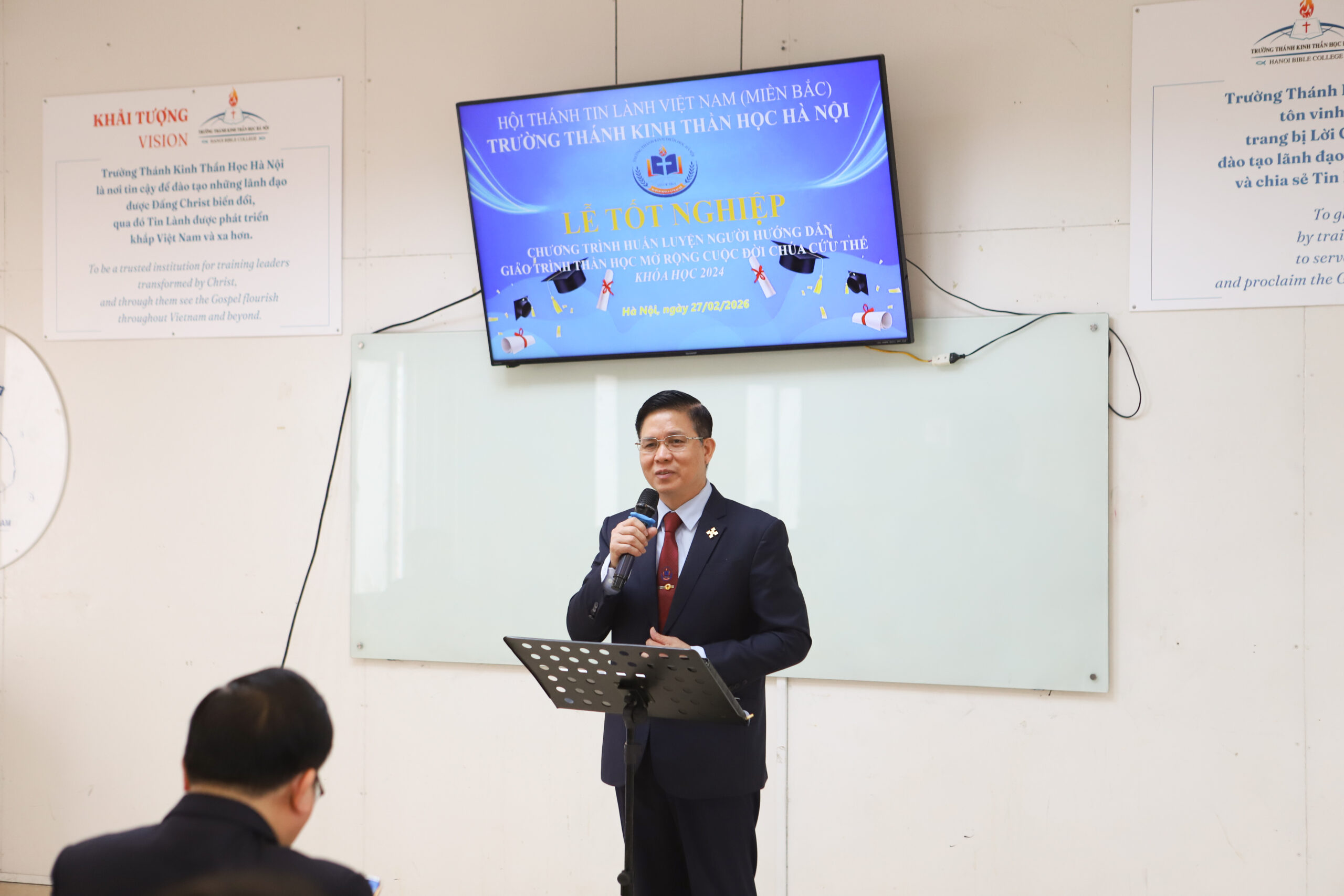 Tham dự buổi lễ có: Mục sư Bùi Văn Sản – Hội trưởng Hội Thánh Tin Lành Việt Nam (Miền Bắc); Mục sư Nguyễn Hữu Mạc – Phó Hội trưởng I, Hiệu trưởng Trường Thánh Kinh Thần học Hà Nội; Mục sư Phạm Bá Hạnh – Tổng Thư ký; cùng quý giáo sư và các mục sư phụ trách lớp học.