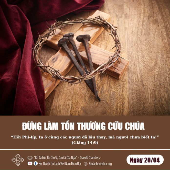 “Lòng các ngươi chớ hề bối rối” (14:1, 27). Tôi có đang làm tổn thương Chúa Giê-su bằng cách cứ để cho lòng tôi luôn luôn bối rối? Nếu tôi tin Chúa Giê-su và đặc tính của Ngài, thì hiện tôi có đang sống thật đúng với niềm tin của tôi không? Tôi có đang để bất cứ điều gì làm cho lòng tôi phiền muộn, hay tôi đang để các câu hỏi – thiếu vững vàng và không cân bằng – đi vào trong tôi không? Tôi phải vượt đến trình độ của một tình tương giao tuyệt đối và không chút nghi vấn và tiếp nhận mọi sự đúng như Ngài đưa đến. Đức Chúa Trời không hề dẫn dắt chúng ta chỉ trong đôi lúc nào đó thôi trong tương lai, nhưng ngay trong giây phút nầy và chính tại nơi đây. Hãy nhận biết rằng Cưú Chúa hiện đang ở đây, và ngay tức khắc bạn nhận được sự tự do.