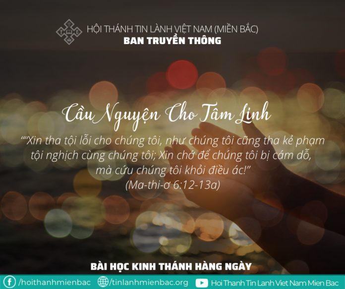 “Xin tha tội lỗi cho chúng tôi, như chúng tôi cũng tha kẻ phạm tội nghịch cùng chúng tôi; Xin chớ để chúng tôi bị cám dỗ, mà cứu chúng tôi khỏi điều ác!”