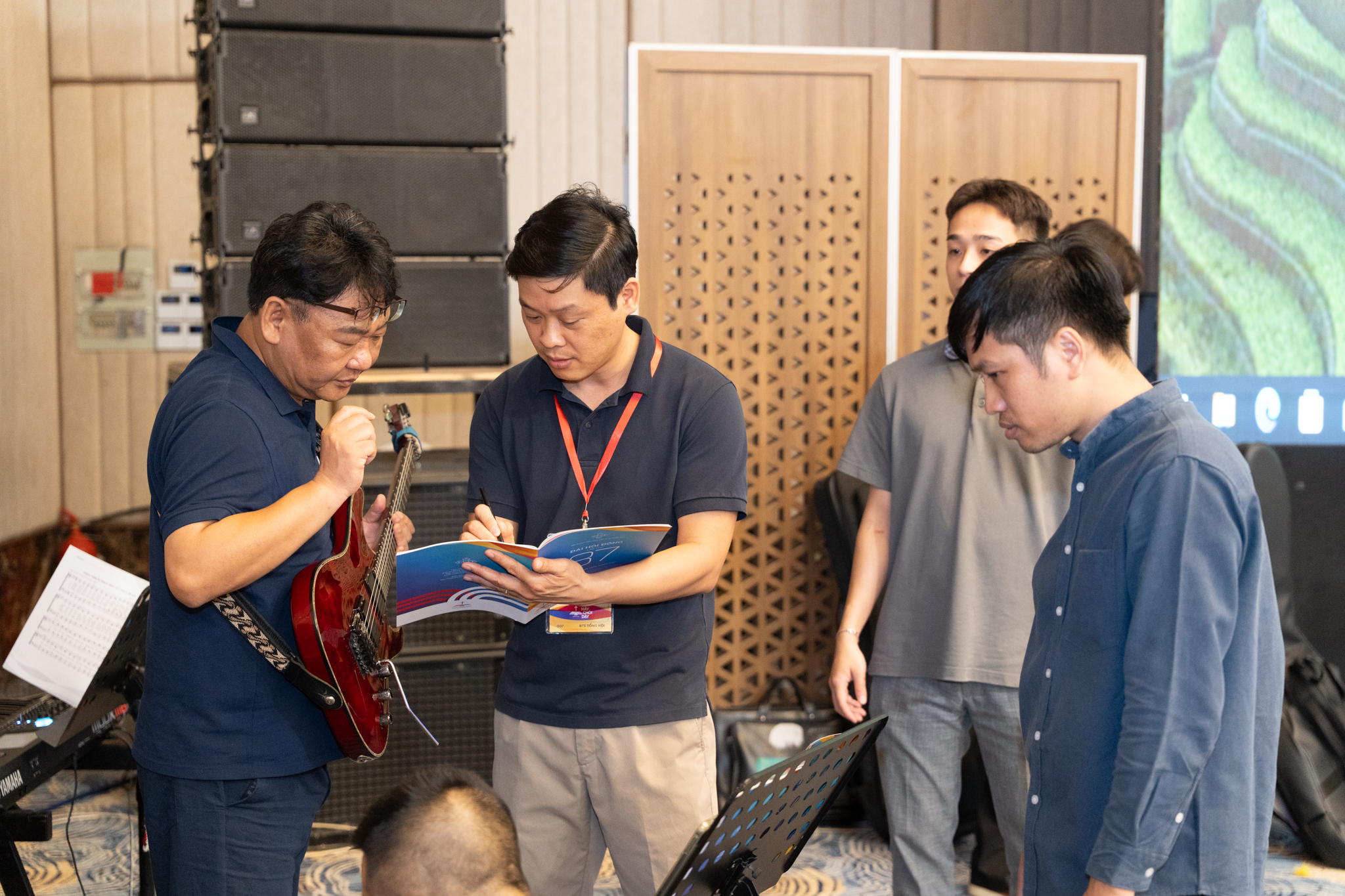 Ngay từ đầu giờ chiều hôm nay (20/04), các công tác tiếp đón, đăng ký, nhận tài liệu được triển khai đồng bộ trong tinh thần vui mừng và trật tự. Ban tiếp tân, ban tài chính khẩn trương hỗ trợ đại biểu hoàn tất thủ tục; ban kỹ thuật và truyền thông gấp rút lắp đặt, chạy thử hệ thống; trong khi đó, ban ca đoàn và hát dẫn cũng tích cực tập dượt cho các chương trình. Tất cả tạo nên một không khí vừa tất bật, vừa háo hức trước giờ khai mạc.