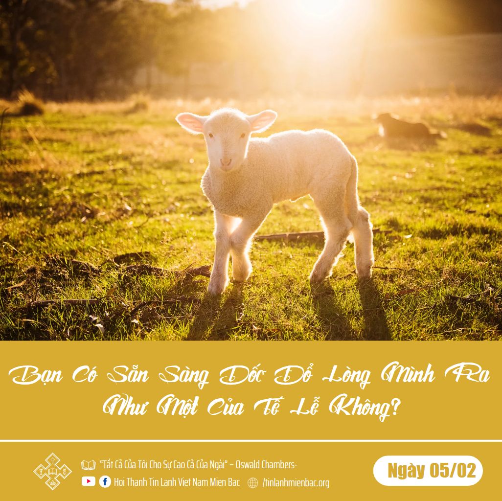 Bạn có sẵn sàng dốc đổ lòng mình ra như một của tế lễ không? Đây là một hành động của ý chí, chứ không phải của xúc động nhất thời. Hãy thưa với Đức Chúa Trời bạn sẵn sàng trở nên một của tế lễ cho Ngài. Kế đó sẵn sàng nhận lấy những kết quả xảy đến, không một chút than phiền, bất luận điều gì mà Đức Chúa Trời có thể mang đến cho bạn. Đức Chúa Trời mang đến bạn một cơn khủng hoảng trong một nơi riêng rẽ, nơi không có lấy một người có thể giúp đỡ bạn. Bề ngoài đời sống bạn vẫn thấy không khác gì, nhưng có một sự khác biệt đang chiếm hữu ý chí bạn. Một khi bạn trải qua kinh nghiệm của cơn khủng hoảng đó trong ý chí mình, bạn sẽ thấy bạn không cần suy nghĩ gì về giá bạn phải trả khi sự việc đó bắt đầu ảnh hưởng đến đời sống bề ngoài của bạn. Nếu bạn không trước hết liên hệ ngay với Đức Chúa Trời theo trình độ của ý chí bạn, thì kết quả của sự khủng hoảng đó sẽ chỉ khơi dậy trong bạn sự thương hại cho chính bản thân bạn mà thôi.