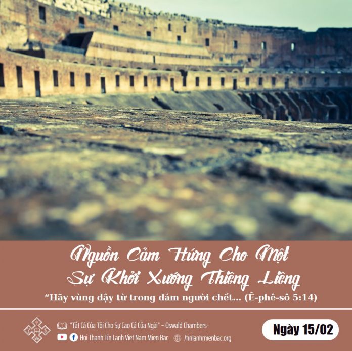 Tất cả chúng ta đều đã có nhiều ước mơ và nguồn cảm hứng khi chúng ta còn trong tuổi trẻ, nhưng không sớm thì muộn chúng ta đều ý thức rằng chúng ta thật không có năng lực để thành tựu các ước mơ và nguồn cảm hứng đó. Chúng ta không thể làm được mọi điều như lòng chúng ta khao khát, và vì thế chúng ta có khuynh hướng xem mọi sự đó như đã chết. Nhưng Đức Chúa Trời đến và nói với chúng ta, “Hãy vùng dậy từ trong đám người chết…” Khi Đức Chúa Trời ban nguồn cảm hứng Ngài cho chúng ta, nguồn cảm hứng đó sẽ đến trong chúng ta với một sức mạnh lạ lùng đến đỗi chúng ta có thể “vùng dậy từ trong đám người chết” và làm những việc đã được xem như hoàn toàn không có thể. Điều lạ lùng nhất về sự khởi đầu thuộc linh chính là đời sống và sức mạnh chúng ta có được liền sau khi chúng ta “đứng lên và tiến bước.” Đức Chúa Trời không hề ban sẵn cho chúng ta một đời sống chiến thắng – Ngài ban cho chúng ta sức chiến thắng đang khi chúng ta trải qua đời sống. Khi nguồn cảm hứng của Đức Chúa Trời đến, và Ngài phán, “Hãy vùng dậy từ trong đám người chết…,” thì chúng ta phải tự mình đứng lên; Đức Chúa Trời sẽ không đỡ chúng ta đứng lên. Cưú Chúa chúng ta đã phán cùng người teo tay, “Hãy giơ tay ra” (Ma-thi-ơ 12:13). Liền ngay khi người đàn ông giơ tay mình ra, cánh tay người ấy được lành. Nhưng trước hết chính người nầy phải tự bắt đầu. Nếu chúng ta tự khởi sự để chiến thắng, chúng ta sẽ thấy rõ chúng ta có nguồn cảm hứng của Đức Chúa Trời, bởi vì liền ngay khi đó Ngài sẽ ban cho chúng ta sức mạnh của đời sống.