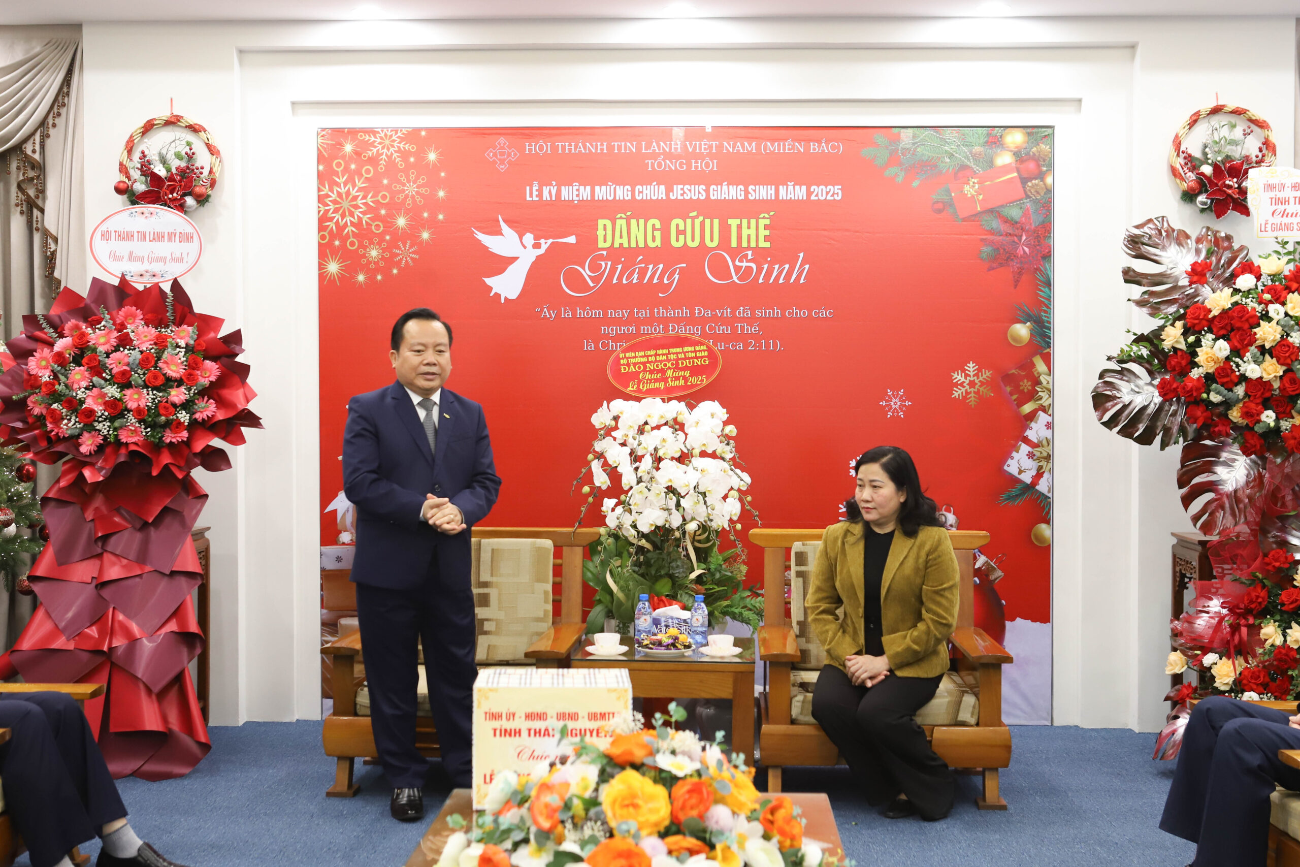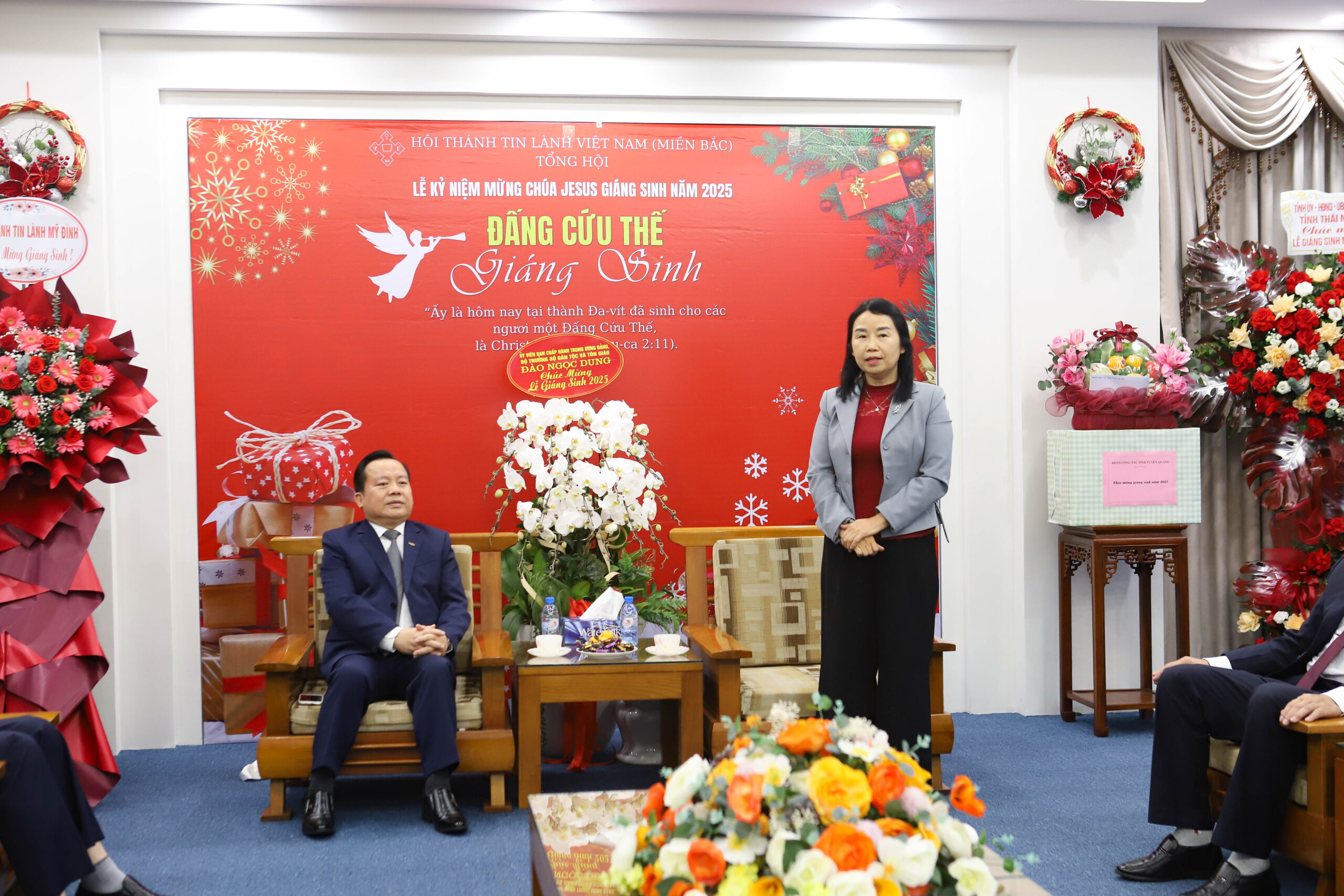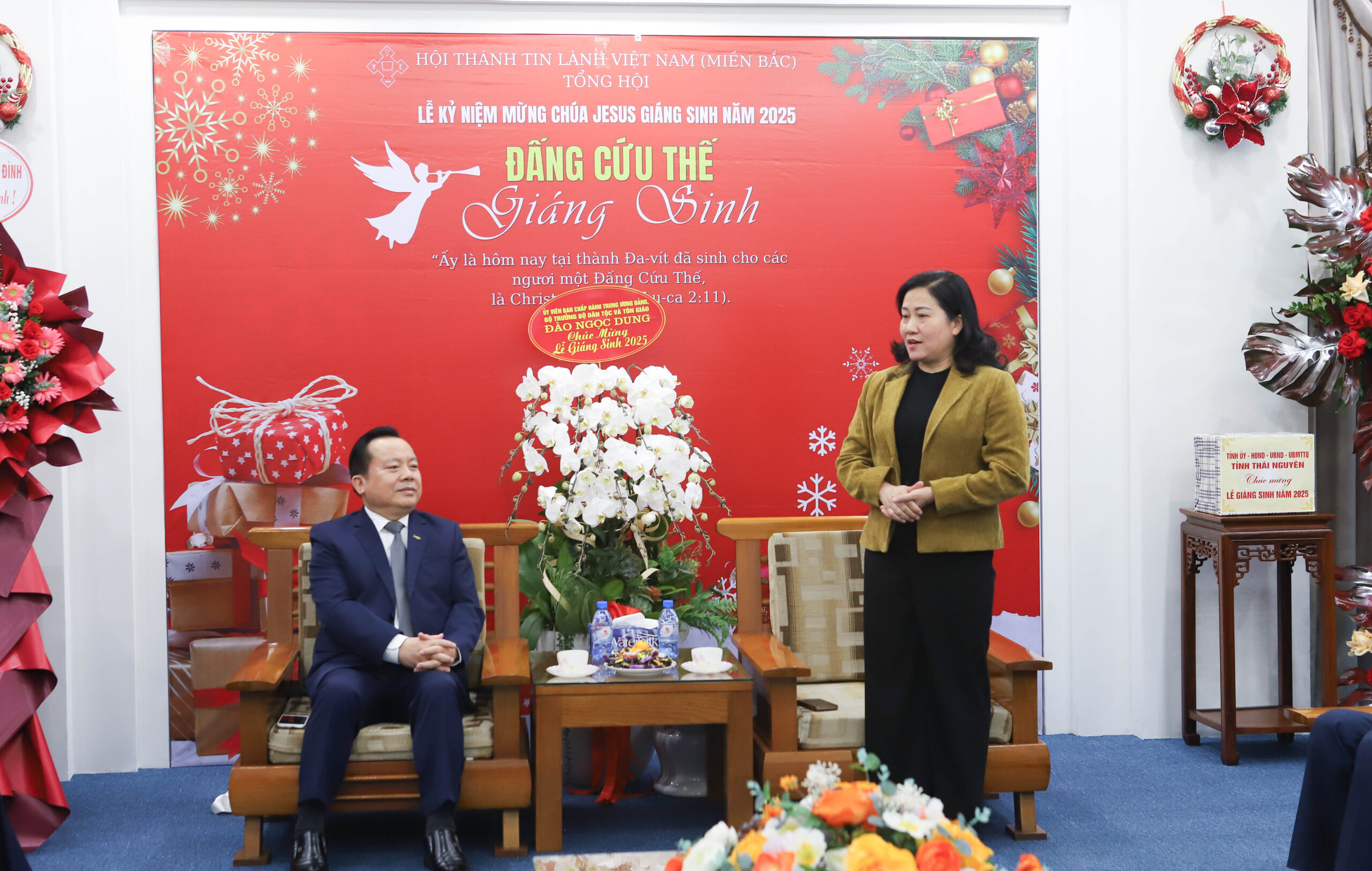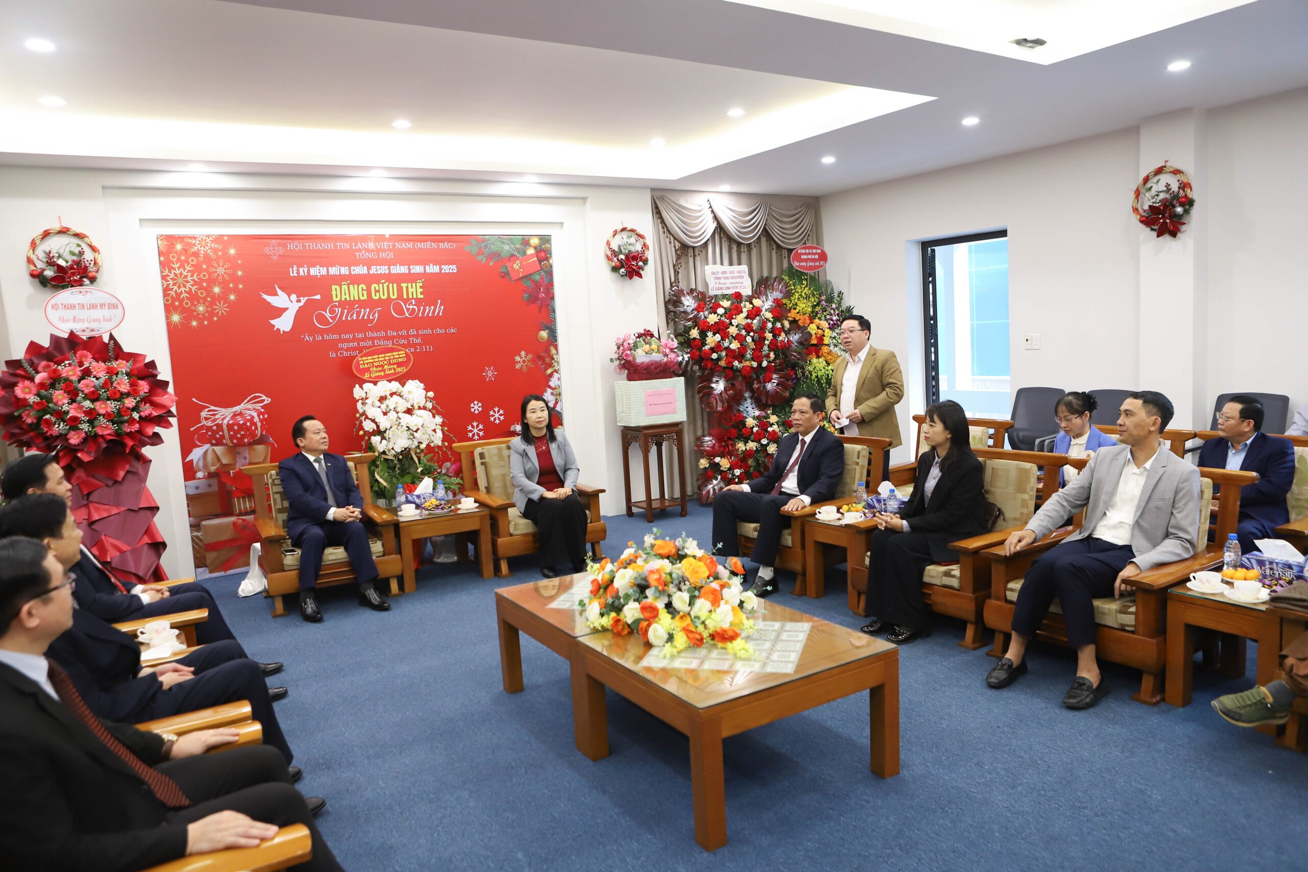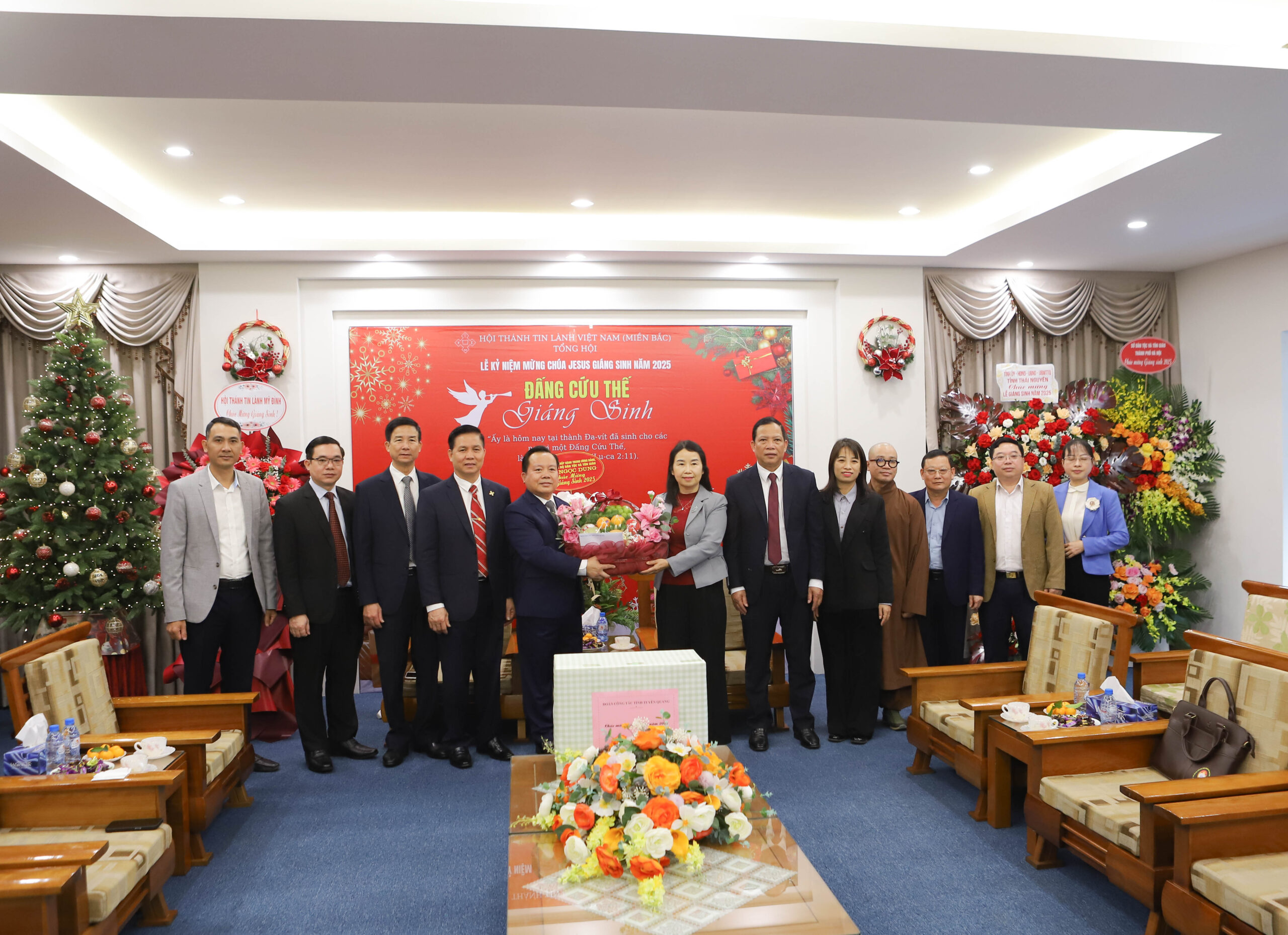 Sáng ngày 18/12, Văn phòng Tổng Hội – Hội Thánh Tin Lành Việt Nam (miền Bắc) trân trọng tiếp đón Đoàn đại biểu tỉnh Thái Nguyên đến thăm và chúc mừng nhân dịp Lễ Giáng Sinh. Đoàn do bà Đỗ Thị Minh Hoa, Ủy viên Ban Thường vụ, Trưởng ban Tuyên giáo và Dân vận Tỉnh ủy làm Trưởng đoàn. Sau đó, Tổng Hội tiếp tục đón Đoàn đại biểu tỉnh Tuyên Quang, do bà Vương Thúy Hằng, Phó Trưởng ban Tuyên giáo và Dân vận làm Trưởng đoàn.